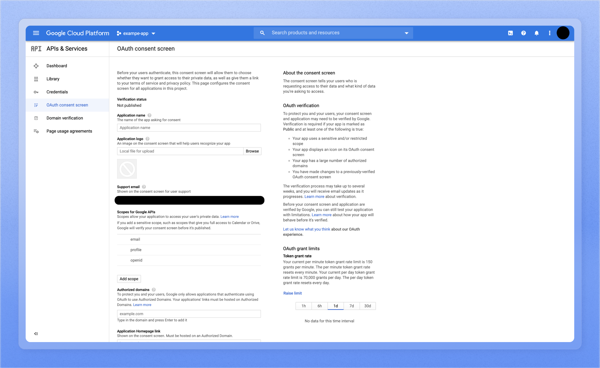 3. Configure the OAuth consent screen with information about the app.
